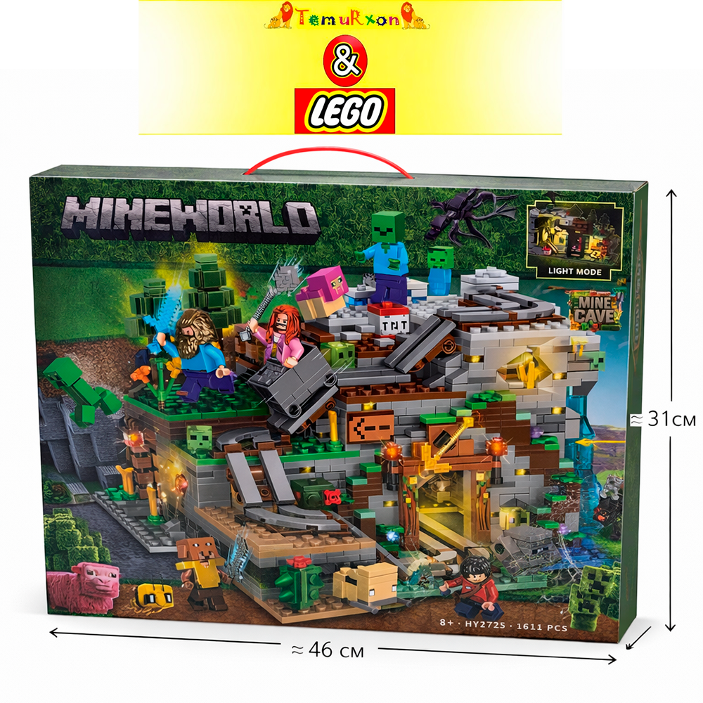 Конструктор Minecraft Cave HY2725 — это большой набор из 1611 деталей с эффектной LED-подсветкой, позволяющий собрать масштабную пещеру в стиле популярной игры. Подходит для детей от 8 лет. Отличный подарок для фанатов Minecraft.