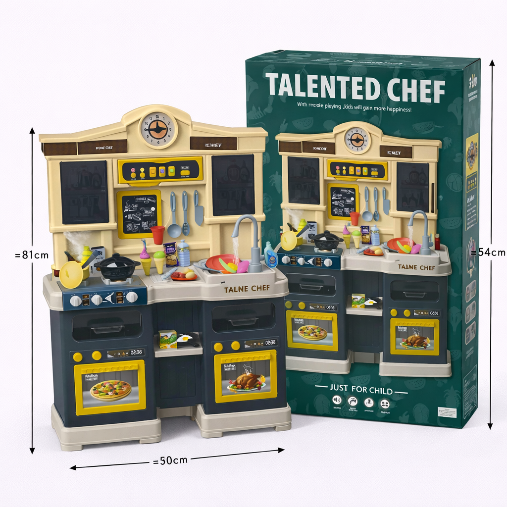 Игрушечная кухня Talented Chef — это большая многофункциональная игровая зона для ребенка. Высота 81 см делает её максимально реалистичной и удобной для детей. В комплекте есть плита, духовка, мойка с краном и множество аксессуаров для игры. Отличный вариант для развития воображения и сюжетно-ролевых игр.