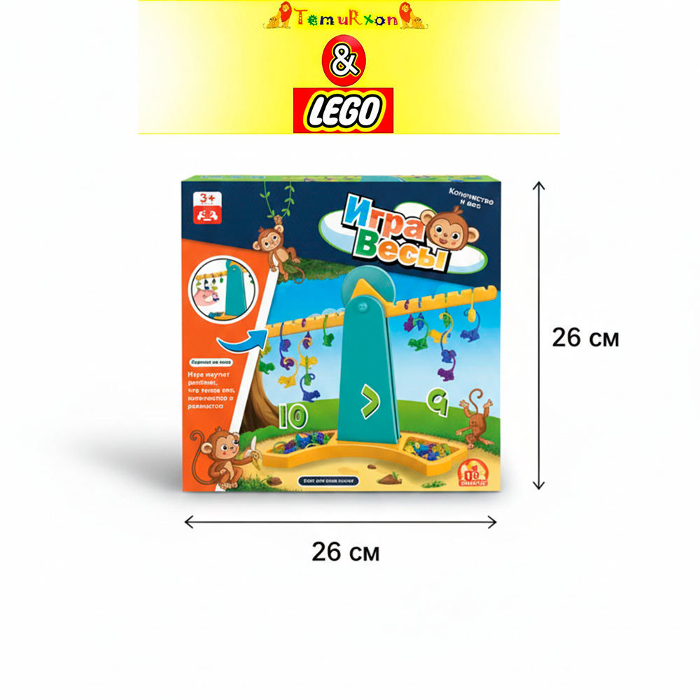Детская развивающая игра «Игра Весы» предназначена для обучения ребёнка основам счёта, сравнению чисел и пониманию равновесия в игровой форме. В центре игры — весы с подвесными элементами, которые ребёнок размещает по обе стороны, добиваясь баланса.