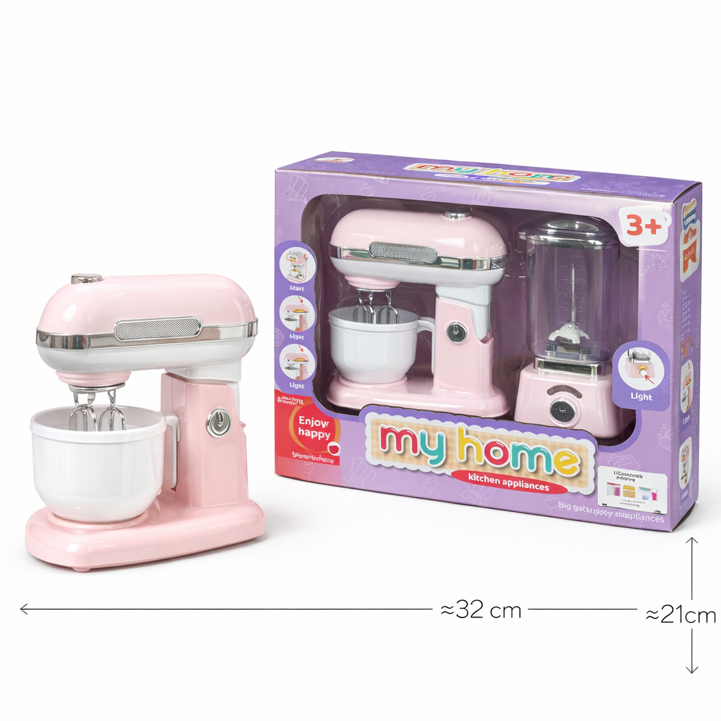 Игровой набор «My Home» — это детская кухонная техника, которая позволяет ребёнку почувствовать себя настоящим поваром. В набор входят игрушечный миксер и блендер, выполненные в реалистичном дизайне.
