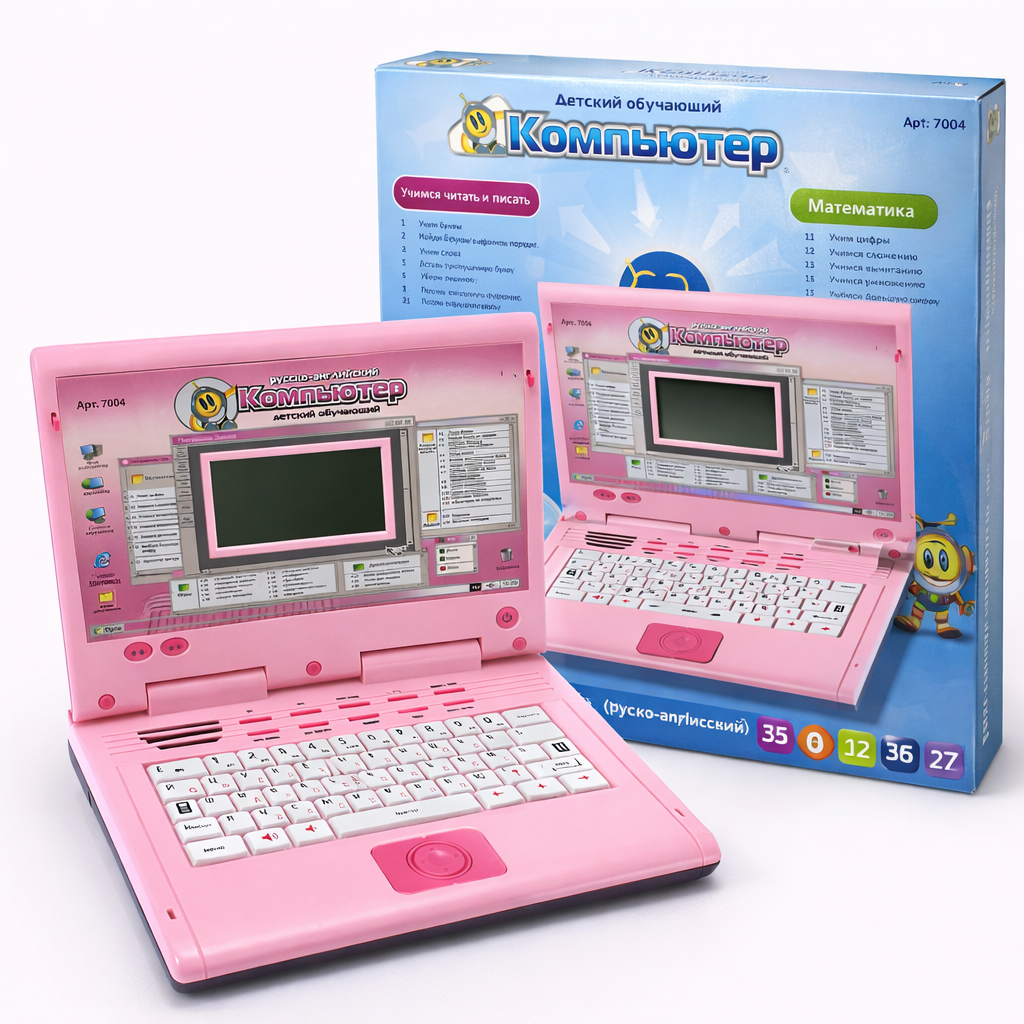 Обучающий компьютер — универсальная развивающая игрушка для детей, которая помогает освоить основы чтения, письма и математики. Поддержка двух языков (русский и английский) делает обучение более эффективным.