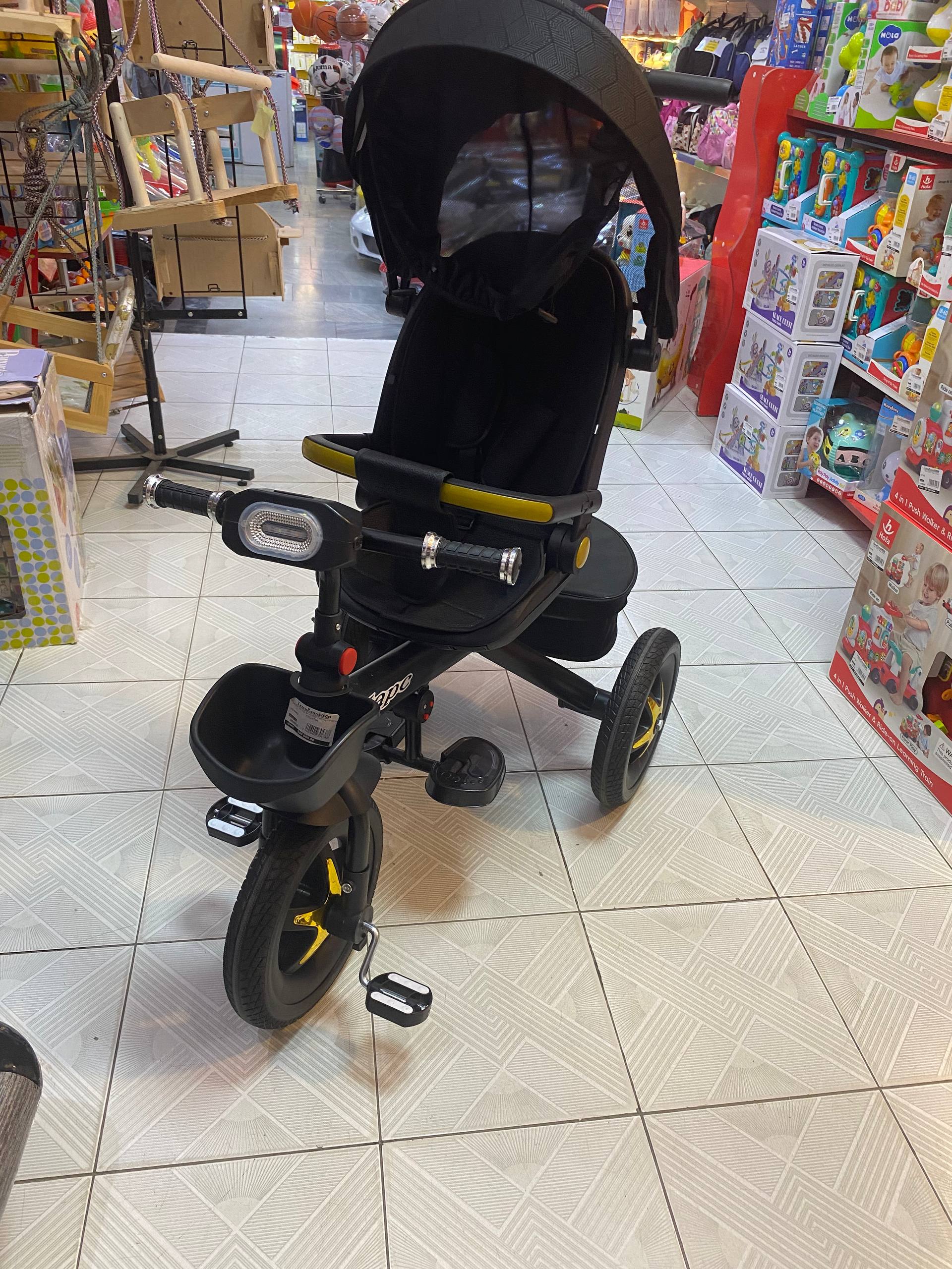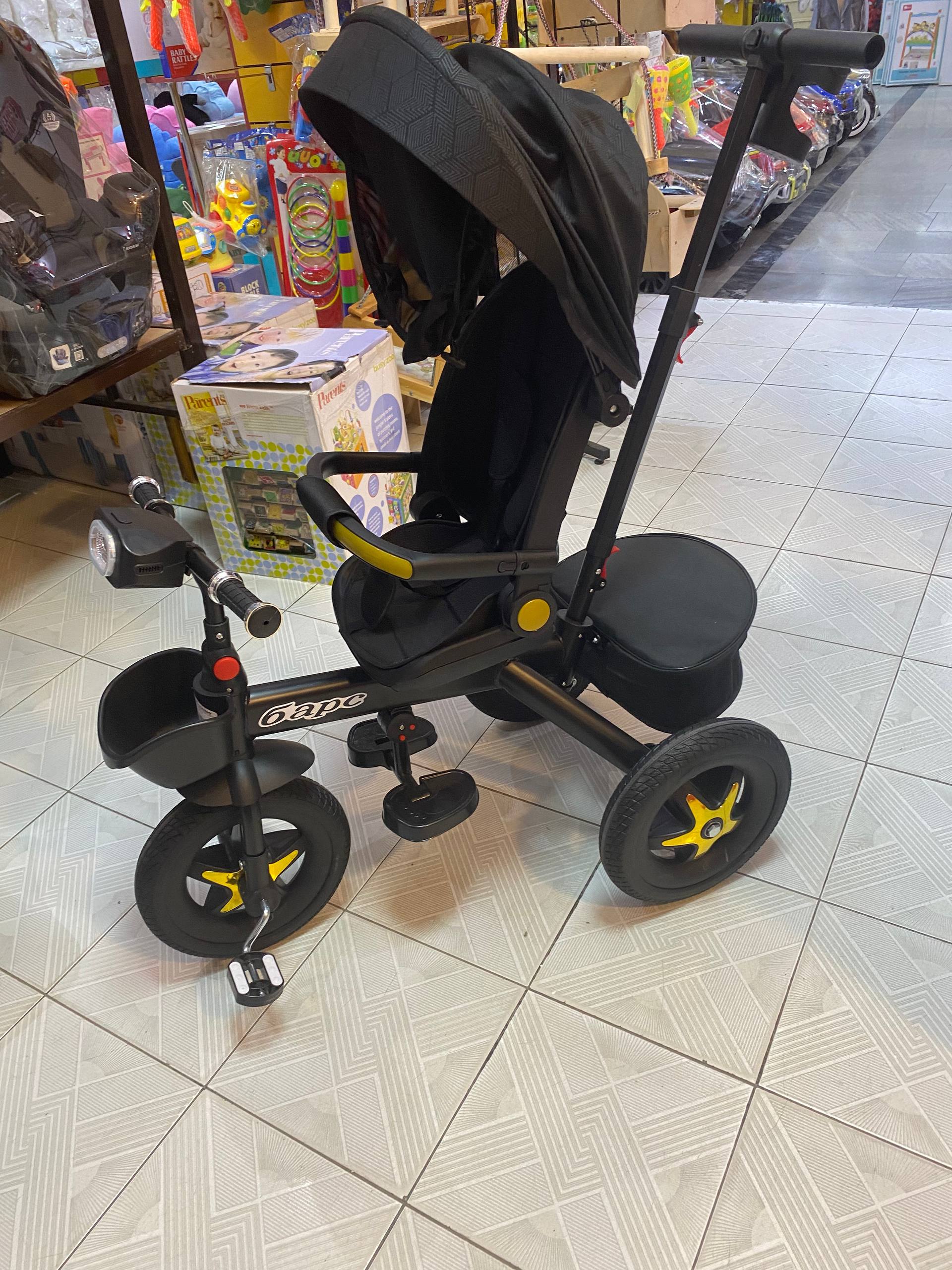 Стильный и надёжный детский трёхколёсный велосипед-коляска с усиленной рамой и современным дизайном. Оснащён удобным сиденьем, капюшоном от солнца, родительской ручкой и корзиной для мелочей. Подходит для комфортных и безопасных прогулок с малышом.