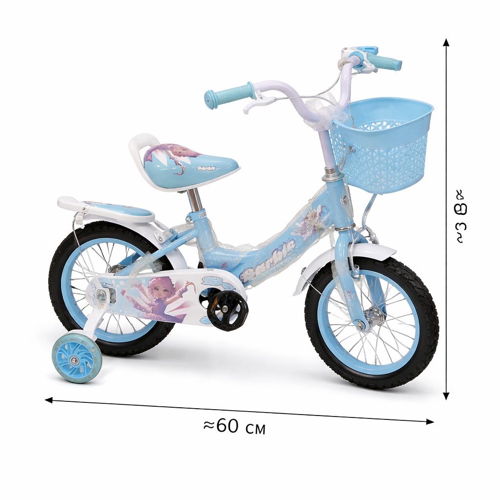 Детский велосипед 12″ с боковыми колёсами и корзиной