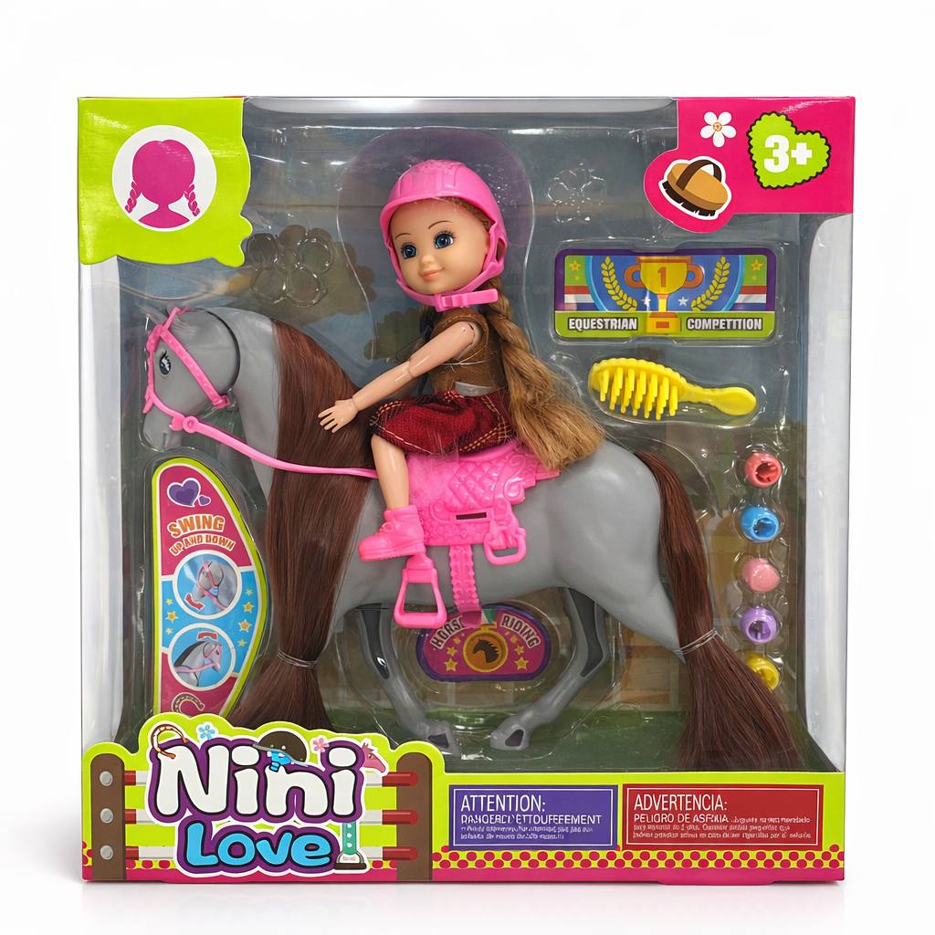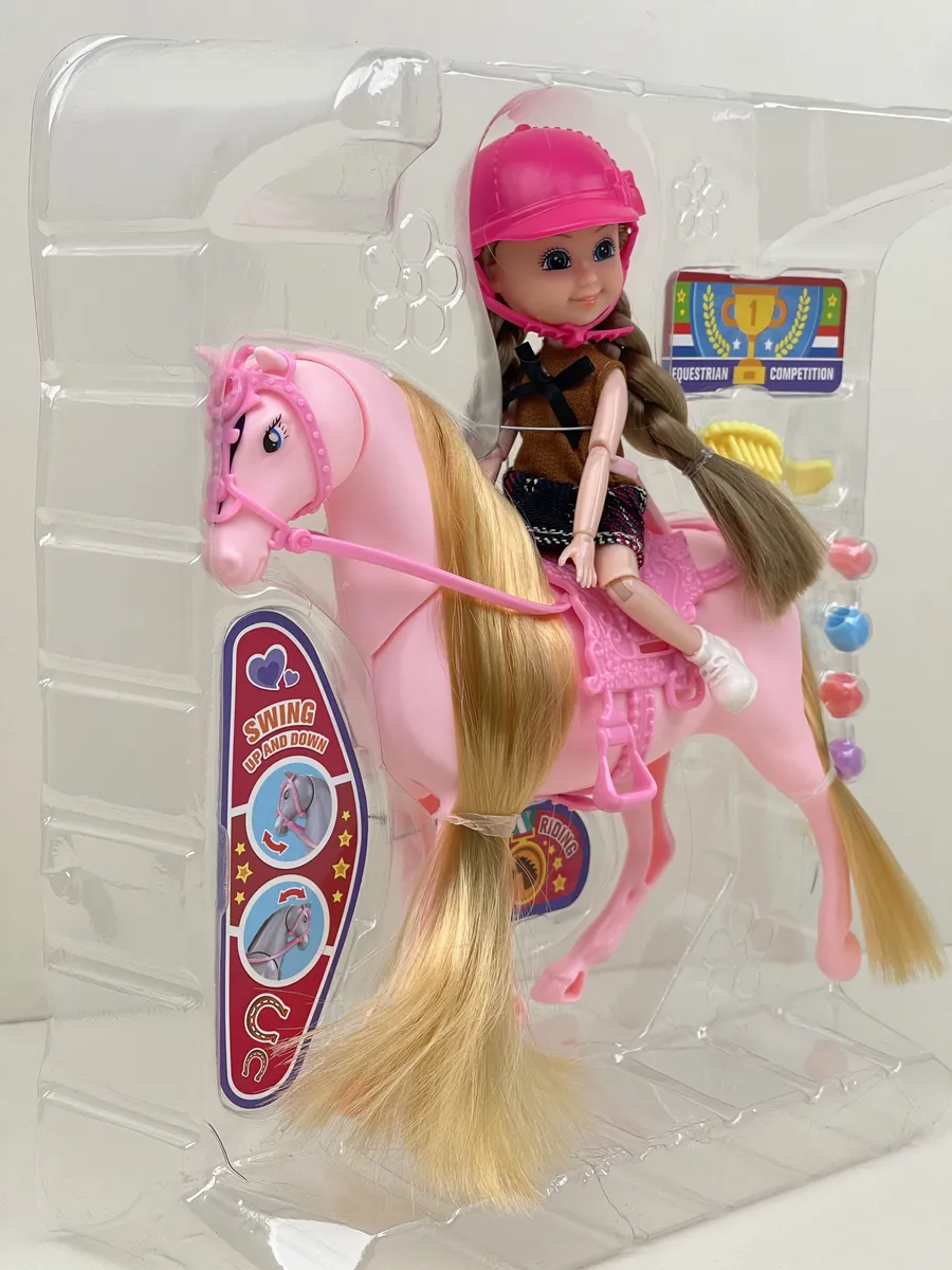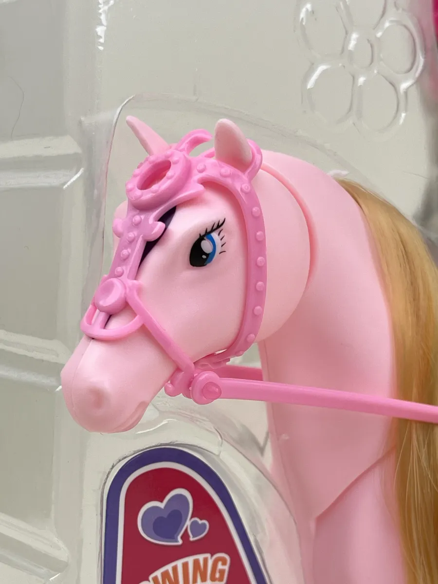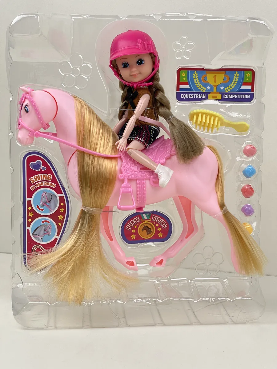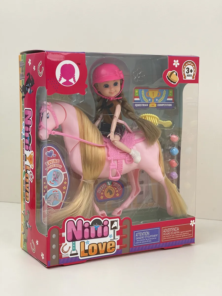 Отличный подарок для любой девочки очаровательная куколка с милой лошадкой. Ребенок будет в восторге от этого набора, ведь с ним так интересно и весело играть. В комплект входит кукла, лошадка, расчёска, заколки.