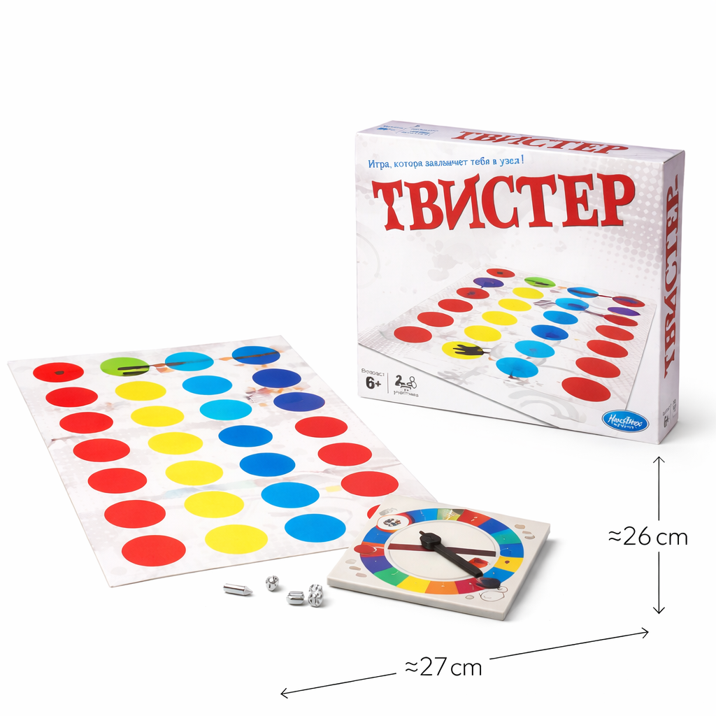 «Твистер» — это весёлая и активная игра для детей и взрослых, которая превращает обычный вечер в настоящий праздник. Игроки должны ставить руки и ноги на цветные круги, следуя указаниям рулетки.
