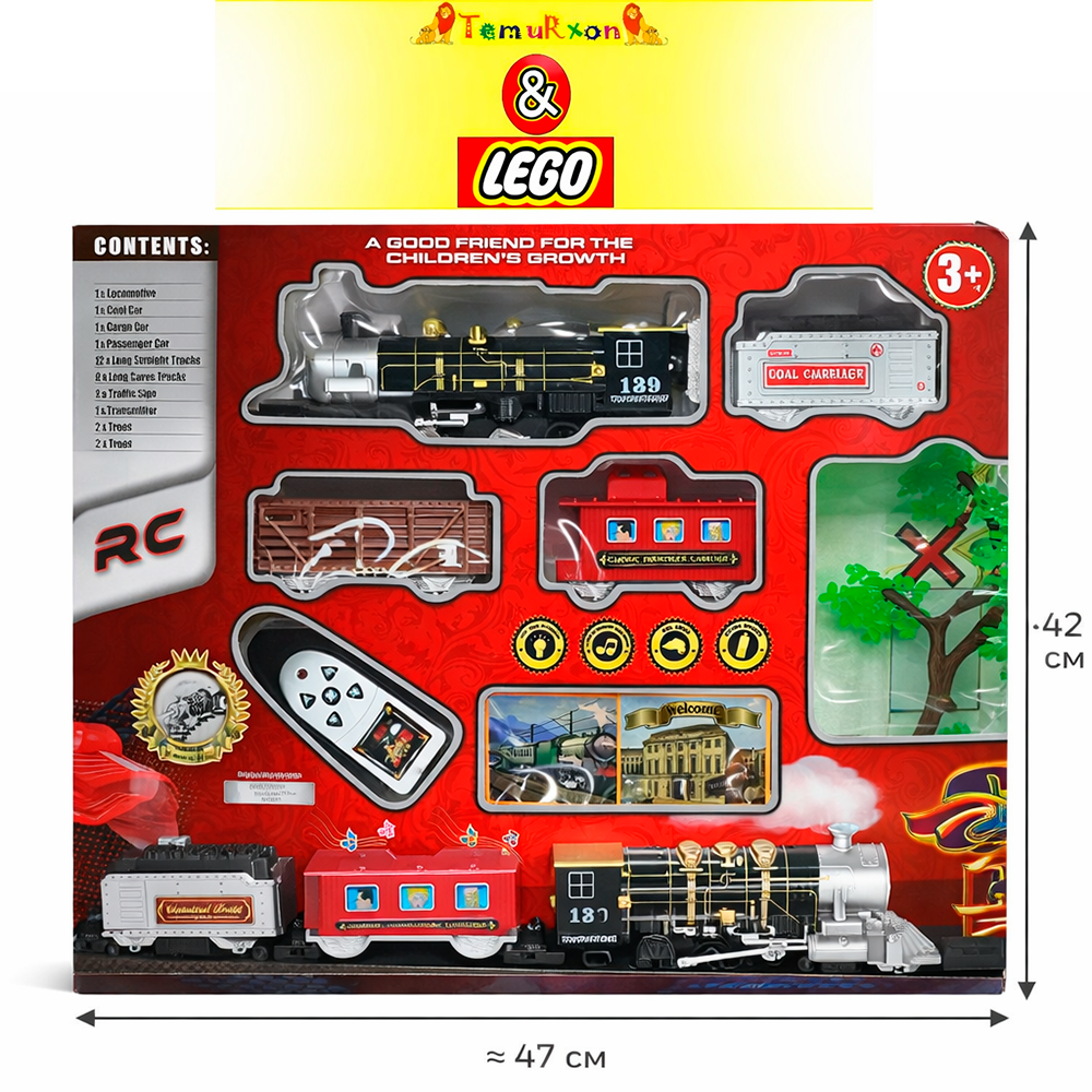 RC Train — железная дорога с дистанционным управлением. В комплект входит паровоз, вагоны, элементы рельсов и пульт управления.