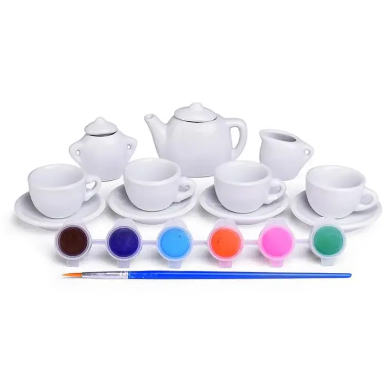 Набор для творчества «Ажурные узоры», фигурки для росписи. В наборе:. — чайник. — сахарница. — кувшин. — 4 чашки. — 4 тарелки. — кисть. — краски. Изготовлено из полимерных материалов, пластика. Соответствует требованиям безопасности продукции. Для детей от 3 лет.