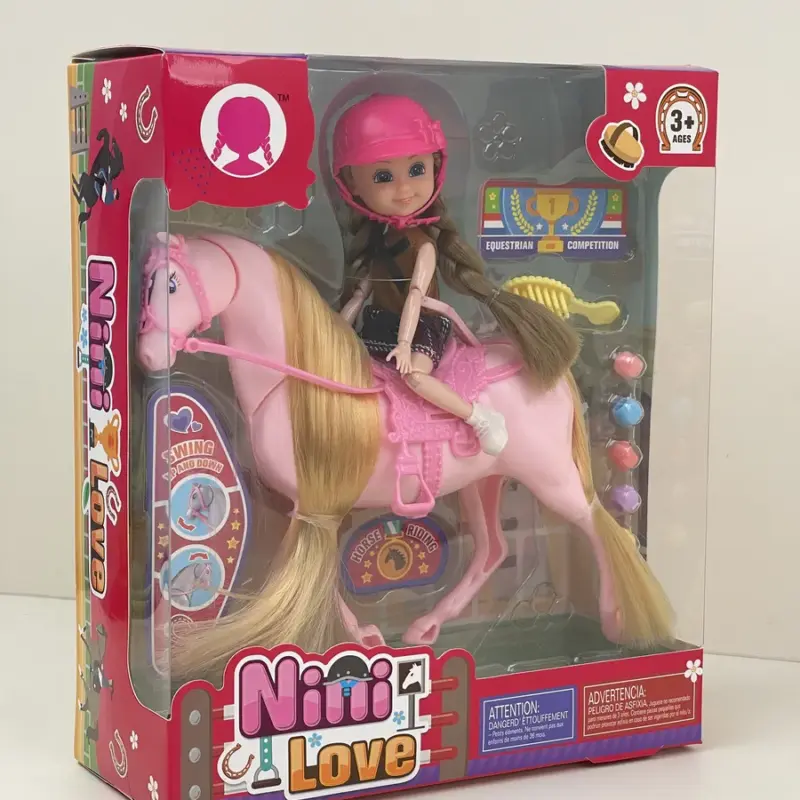 Отличный подарок для любой девочки очаровательная куколка с милой лошадкой. Ребенок будет в восторге от этого набора, ведь с ним так интересно и весело играть. В комплект входит кукла, лошадка, расчёска, заколки.